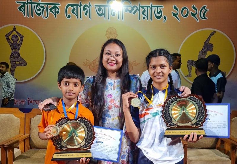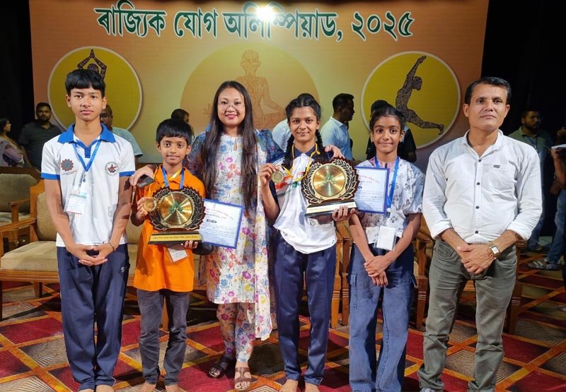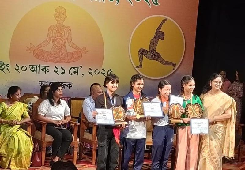 Photos of State Level Yoga Olympiad held on 20 and 21 May, 2025 at Srimanta Sankardev Kalakhetra, Guwahati. 4 (Four) students from Darrang participated in the Competition.
