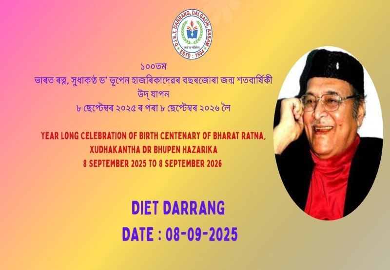 DIET Darrang proudly celebrates the Centenary Birth Anniversary of Bharat Ratna, Xudhakantha Dr. Bhupen Hazarika (1926–2026), honoring his timeless legacy of music, culture, and humanity.”