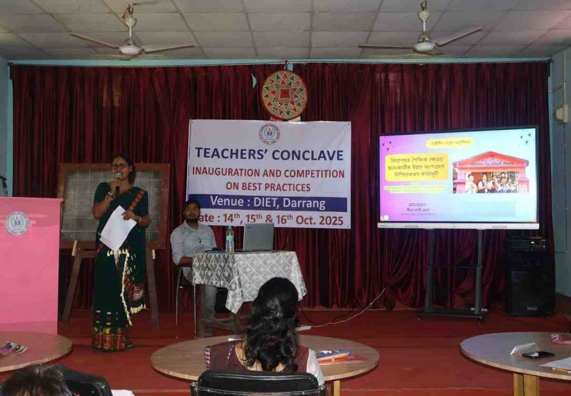 The 3-day District Level Teachers’ Conclave 2025 was hosted by DIET Darrang from October 14th to 16th, 2025, at the DIET premises. This conclave united teachers, mentors, and visionaries to celebrate the spirit of teaching and learning. The event commenced with the respected Principal hoisting the flag, followed by the ceremonial lamp lighting in front of Dr. Sarvapalli Radhakrishnan's statue, symbolizing the guiding light of wisdom for teachers. A heartfelt tribute was paid to the late Zubeen Garg, whose melodies continue to inspire hearts across Assam. To mark the occasion, judges planted Nahar saplings, signifying growth, sustainability, and new beginnings. This was followed by presentations of best practices by talented teachers from across the district.