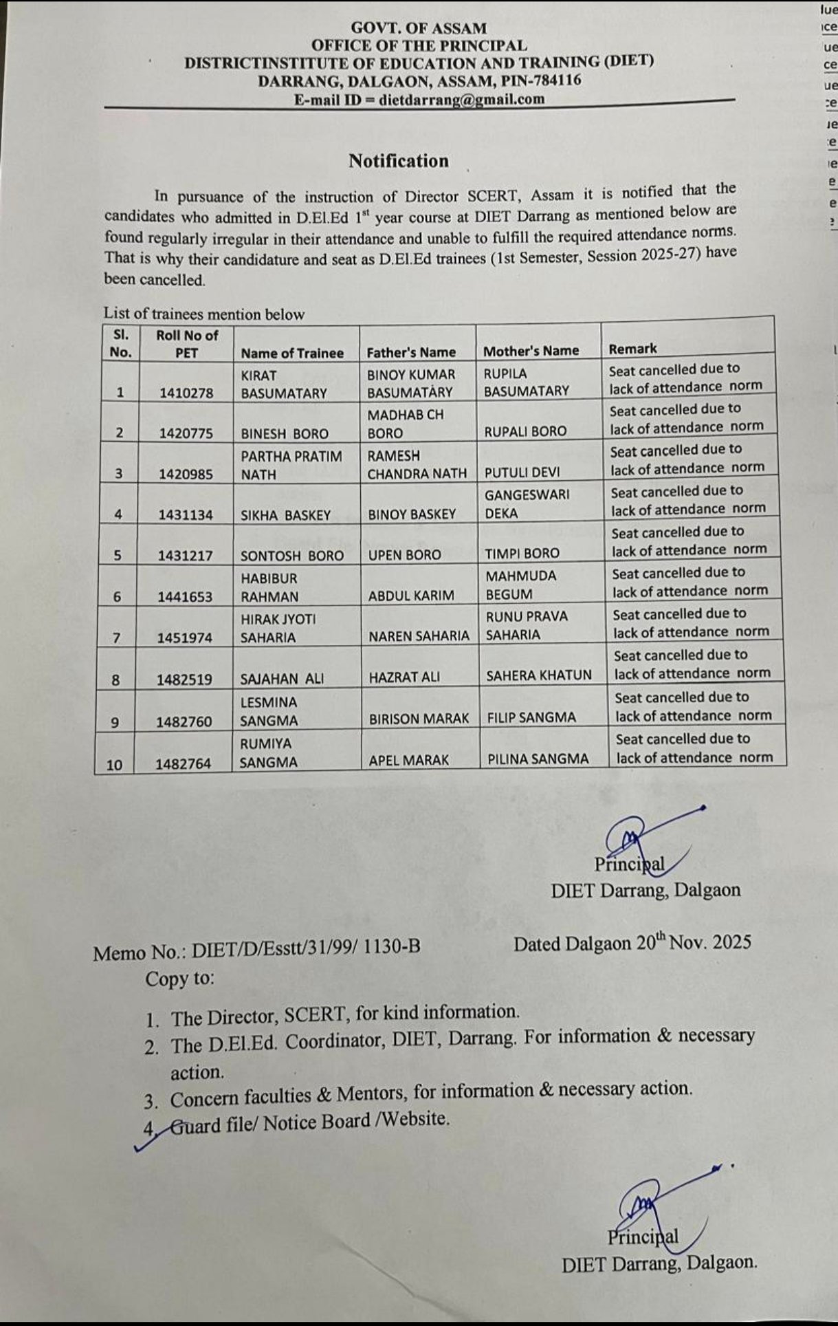 As per provision of National Policy of Education, 1986 the DIET Darrang, Dalgaon was established in June, 1994 and officially started to work w.e.f. 20th August, 1994. Since its inception, this DIET has been serving for the upliftment of educational scenario in Elementary Section under Darrang district. It has been playing an important role in implementation of different programmes of DPEP and SSA till date.